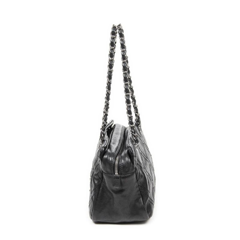 Sofisticata e funzionale, questa borsa è caratterizzata da doppie cuciture a forma di rombo. Realizzata in pregiata pelle di vitello nera e impreziosita da finiture in metallo color argento, è ideale per un utilizzo quotidiano senza rinunciare allo stile. Le dimensioni compatte la rendono pratica e versatile, perfetta per accompagnare look sia casual che più raffinati.