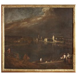 Impossibile accertare i motivi per cui l’esecuzione di questa insolita veduta fu abbandonata dal giovane pittore, né sapere se questa versione segua o preceda quella di Dallas. Il dipinto qui presentato si conferma in ogni caso di estremo interesse nel rivelarci i procedimenti esecutivi del giovane Canaletto.