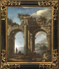 CAPRICCIO CON ARCHITETTURA CLASSICA E MARINA
