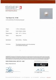 realizzato in platino cesellato a motivi fogliacei con una perla naturale di 4.16 ct/16.62 grani affiancanta da tre brillanti di forma quadrata, corredato di certificato SSEF n. 72786 datato 03.03.2014