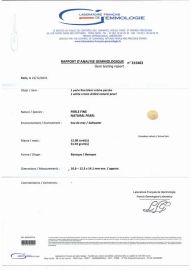 al centro una perla naturale di 12.98 ct/51.92 grani entro montatura polilobata in platino e brillanti, corredata di certificato Laboratoire francais de gemmologie n. 315463 datato 21.12.2015
