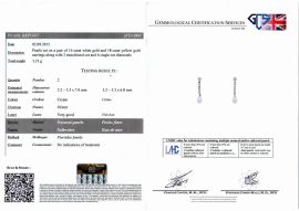 ciascuno ad una linea di quattro brillanti taglio vecchio e singolo, finale una perla a goccia rispettivamente di 5.2-5.3x7.0 mm e 5.2-5.3x6.8 mm, corredato di certificato GCS 5775-2897 datato 02.09.2015