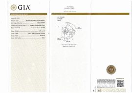 ciascuno realizzato da una corolla di brillanti incolori a cui è sospesa una linea di brillanti e baguette con finale rispettivamente un diamante Fancy Gray-Greenish Yellow di 4.24 ct e Fancy Dark Gray-Greenish Yellow di 4.25 ct, corredati di certificati GIA n. 2165215789 e n. 2165215806 datati 09/06/2014 che indicano l'origine naturale del colore, punzone 750, 7 g