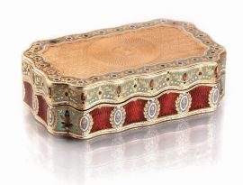 TABACCHIERA , SEC. XIX, IN ORO GIALLO E SMALTI POLICROMI CON MINIATURA DI JEAN LOUIS RICHTER