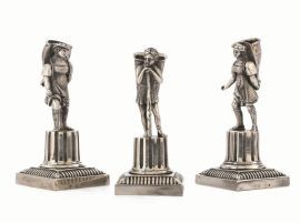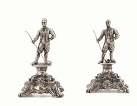 in argento, basi quadrate sagomate su cui poggiano due zuavi, alt. cm 13, complessivi g 104;
