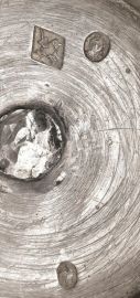 corpo piriforme su tre piedini a zoccolo equino stilizzato, manico dritto in legno tornito, finale del coperchio a trottola, alt. cm 29, g 1210