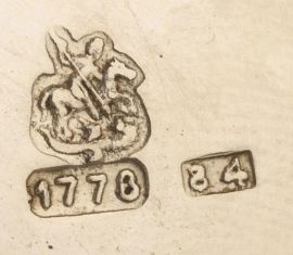 in argento di forma ovale con due anse realizzate a foglia, finale del coperchio con animali, completa di ramaiolo, cm 23x14, g 585