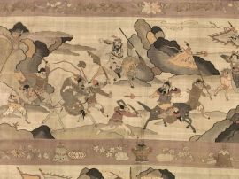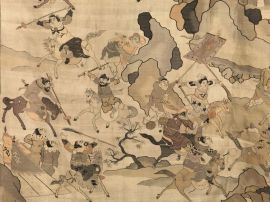 in seta Kesi decorato con unascena di battaglia, cm 214x154