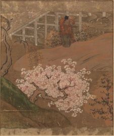 su carta raffiguranti figure in dei giardini, cm 20x17 ciascuno