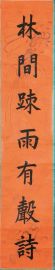 dipinti su carta con caratteri cinesi descriventi paesaggi, uno a fondo rosa, uno a fondo rosso, e due a fondo arancio, cm 100x20,5, cm 118x26, cm 51x23,5(4)