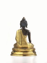in bronzo dorato raffigurante Shakyamuni assiso in dhyanasana su doppia