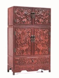 A FINELY CARVED CANNIBAR LAQUER CABINET, CHINA, QING DYNASTY 18TH CENTURY