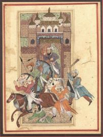 raffiguranti una battaglia e scene di vita di corte tratte da testi indiani cm20x13,5, cm21x13,5, cm 16x11,5 (3)