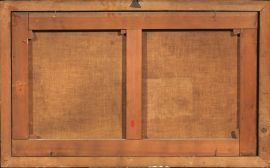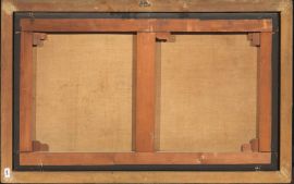 coppia di dipinti ad olio su tela, cm 66x111,5