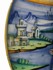 Earthenware painted in green, yellow, yellow-orange, cobalt blue, manganese.