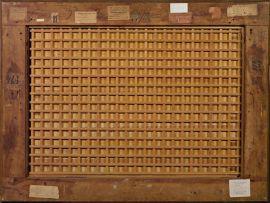 on the reverse of the frame: labels of the exhibitions of Turin (1932), Paris (1935), New York (1949), Rome (1951-1952), Milan (1954), Tokyo - Kyoto (1977-1978), label with "Monti & Gemelli Milano 81", label with the number "427", inscribed "Esposiz. Int. Venezia 1901 N. 574" and "1901 Venezia N. 427".