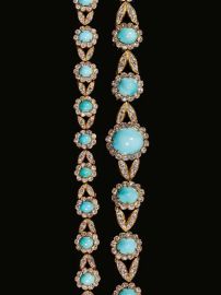 DEMI-PARURE, VAN CLEEF AND ARPELS, FINE ANNI '60, IN ORO GIALLO, TURCHESI E DIAMANTI