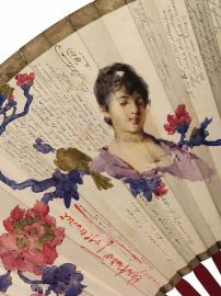 Among the other numerous witty dedications, we point out the one by Augusto Sindici, poet, “The woman is born a woman, and into her pupils / The man looks when he is born, and becomes imbecile” and the one by Enrico Panzacchi, poet and critic, “The Heart said to the Brain: / - Why are you up there at the top? - / It was answered - Brother, / To be a lookout, / And to monitor from above / all of the nonsense that you can do”. Finally, we like to quote the beautiful “souvenir” by Renato Fucini, poet and writer, who commented on the fan and on life: “An Archimandrite motto asked the fan: / - Tell me, Fan, what is life? / - And the fan, with much waving: / - It's all wind, wind, wind wind”.