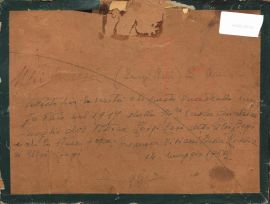 retro: iscritto "Attesto per la verità che questo quadretto mi / fu dato nel 1919 dalla Sig.ra Paola Levi Naim / moglie del pittore Luigi Levi detto Ulvi Liegi / e che lo stesso è opera / di Ulvi Liegi / E....o Viviani Della Robbia / 14 maggio 1962"