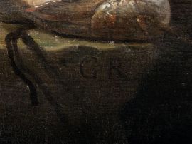 Opera tipica di Giuseppe Recco, di cui reca peraltro le iniziali, la tela qui offerta presenta numerosissimi confronti con la produzione certa dell’artista napoletano ragionevolmente ascrivibile al settimo decennio del secolo.