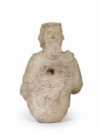 Caratterizzata dalla nitida cadenza falcata del panneggio, dal piglio vigoroso della mano che afferra il panneggio e dalla connotazione carnosa dei tratti fisionomici, l’opera sembra distinguersi dai simili busti lobati di cultura veneta e masegnesca, cui la tipologia potrebbe indurci ad associarla - come, ad esempio, la serie di mezze figure di Profeti conservata nel Kunsthistorisches Museum di Vienna o i Santi della Tomba di Paola Bianca Spinola in San Fermo a Fano (W. Wolters, La scultura veneziana gotica (1300-1460), Venezia 1976, pp. 225-226, n. 148, pp. 232-233, n. 161) -, manifestando una maggiore modernità che, nel rigore formale delle pieghe, nel gesto risoluto e negli accenti naturalistici riscontrabili nei volti e nell’articolazione prensile della mano, richiama gli esordi di Jacopo della Quercia - protagonista assoluto della scultura a Siena, Lucca e Bologna nella prima metà del Quattrocento - in un momento collocabile tra la Madonna della melagrana nel Duomo di Ferrara (1403-8), il Monumento sepolcrale di Ilaria del Carretto in San Martino a Lucca (1406-8) e il Polittico Trenta in San Frediano (1416-22), dove le cuspidi recano figure apicali di concezione affine.
