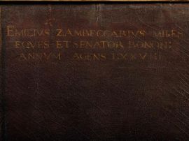 iscritto in alto a destra Emilius Zambeccarius miles/eques et senator