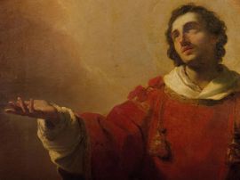 È possibile invece che la nostra figura, composta e insieme imponente, costituisca l’elaborazione di una di quelle “accademie” che Ubaldo Gandolfi, più volte Professore di Figura all’Accademia Clementina fra il 1761 e il 1780, tracciò lungo il suo intero percorso servendosene poi per scopi diversi. Ricordiamo, tra gli altri, il foglio della Fondazione Cini a Venezia, dalla collezione Certani (inv. 32971) più immediatamente riconducibile a un San Sebastiano, ma assolutamente consonante con questa figura di San Lorenzo, esaltata nella nostra tela dalla sontuosa policromia che la distingue.