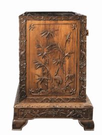 grande mobile in legno duro smontabile in quattro parti, finemente intagliato a motivi di bambù ed aironi, dim. cm 180x88x87