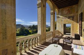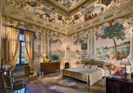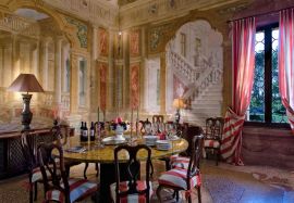 hilltop, next to the Regional Park of the Euganean Hills and only a 45 minutes drive from Venice, the villa offers comfortable and luxurious rooms which retain all their past splendor. The interiors and the loggias are lavishly decorated by frescoes and Venetian stucco decorations of the highest quality. It is surrounded by a raised formal Italian garden and a 6 hectar park with a swimming pool