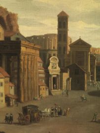 Riproponendo in modo più esteso e completo vedute già note costruite con lo stesso punto di vista, a cui si aggiunge una veduta del Foro verso la torre delle Milizie già a Roma presso la Galleria Megna (vedi L. Salerno, I pittori di vedute in Italia cit., pp. 110-111) il nostro dipinto se ne distingue per proporzioni più ampie e soprattutto per le bellissime figure in primo piano, la cui luminosa cromìa è esaltata da un ottimo stato conservativo.