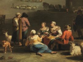 Splendido esempio della produzione olandese italianizzante, il dipinto qui offerto propone un soggetto più volte affrontato da Jacob van Huchtenburgh, a Roma nel 1670 secondo la biografia di Arnold Houbraken.