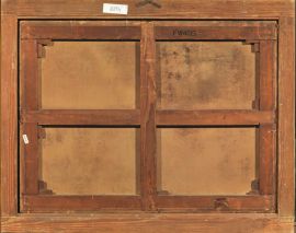 Riproponendo in modo più esteso e completo vedute già note costruite con lo stesso punto di vista, a cui si aggiunge una veduta del Foro verso la torre delle Milizie già a Roma presso la Galleria Megna (vedi L. Salerno, I pittori di vedute in Italia cit., pp. 110-111) il nostro dipinto se ne distingue per proporzioni più ampie e soprattutto per le bellissime figure in primo piano, la cui luminosa cromìa è esaltata da un ottimo stato conservativo.