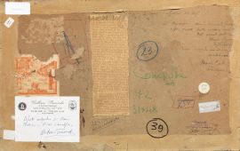 retro: etichetta della Galleria Pesaro di Milano, etichetta Galleria Parronchi di Firenze, iscritto "Firenze Giugno 22.1915 / Al carissimo amico Corrado Gazzini / offro questa bella natura morta / del grande pittore / Mario Puccini / di Livorno / come ricordo per il suo ... / ...... / Mario Galli"