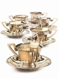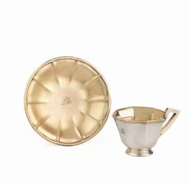 SEI TAZZINE CON PIATTINO, COSENZA, 1830 CIRCA, ARGENTIERE VINCENZO D'ONOFRIO
