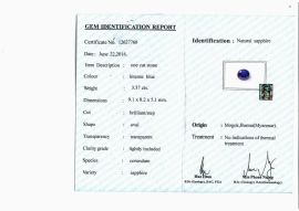 corredato di certificato Stalwart n. 12627760 datato 22/06/2016 che attesta l'origine Birmana dello zaffiro e l'assenza di trattamenti