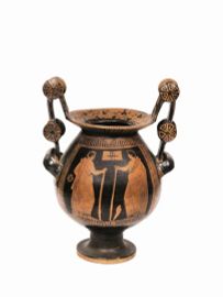 Materia e tecnica: argilla figulina rosata, vernice nera lucente,