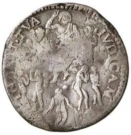 Esemplare col Giudizio Universale al rovescio. Citato dal CNI ai nn. 223/5 e da Galeotti ai nn. XLV, 1/7.