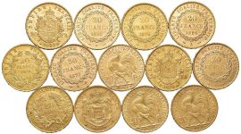 FRANCIA, TREDICI MONETE IN ORO DA 20 FRANCHI