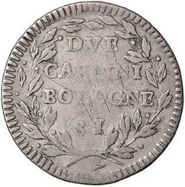Mi D/ COMVNITAS ET SENATVS BONON Stemma inquartato cittadino R/ DVE / CARLINI / BOLOGNE / SI in corona d’alloro Chim. 1194 BB/MB Rarissimo