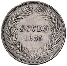 Ag D/ GREGORIVS XVI PONT MAX A V Nel campo busto a s. del pontefice. Sotto B CERBARA R/ In corona d’ulivo SCUDO / 1835 Chim. 1294 Munt. 27 q.SPL