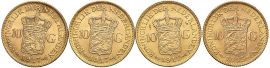 OLANDA, QUATTRO MONETE IN ORO DA 10 FIORINI