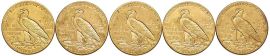 U.S.A., CINQUE MONETE IN ORO DA 2 DOLLARI INDIANO