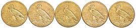 U.S.A., CINQUE MONETE IN ORO DA 2 ½ DOLLARI INDIANO