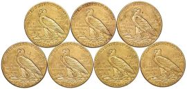 U.S.A., SETTE MONETE IN ORO DA 2 ½ DOLLARI INDIANO