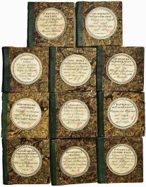 opus Vincenzo Catenacci, scultore e incisore attivo nel regno delle due Sicilie nei primi decenni del secolo XIX. Astuccio a forma di libro con dorso in pelle impresso in oro e la descrizione coeva dei personaggi illustrati