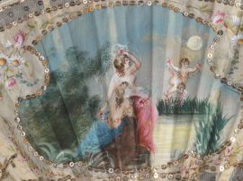 in avorio, tartaruga e lacca con pagine in carta e trina raffiguranti paesaggi, scene bucoliche e scene mitologiche, due con scatola (4)