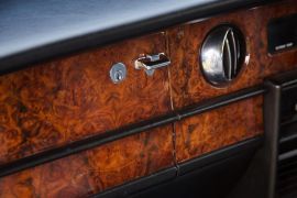 Everything in this car seems to have been designed to create a homogeneous and not too showy image: the sophisticated combination of the sober metallic medium blue paintworkwork and the blue leather upholstery, the absence of a vinyl roof and contrasting finishes make this Rolls-Royce a very elegant motor car. The only quirk is the “Silver Spirit II” badge applied to the lid of the boot by one of its previous owners: a mistake as this car is from the very first Series.