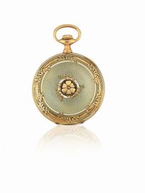 OROLOGIO DA TASCA PATEK PHILIPPE N. 239'359, MOV. N. 134'108 , IN ORO GIALLO 18K E SMALTI, ENTRO SCATOLA CORNHILL LONDON