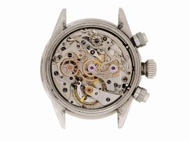 brushed and polished Oyster case with screw-down crowns, pushers and back, black bezelcalibrated for 200 units per hour. Bi-colour black and white dial, applied square and pointshapedluminous indexes, luminous baton hands, three subsidiary engine-turned dials at 3,6 and 9 for 30 minutes and 12 hours registers and constant seconds, outer minute and 1/5second divisions. Caliber 727 manual winding movement. Stainless steel Oyster bracelet, ref.7835, endlinks stamped 271, deployant clasp. Case, dial, movement and bracelet signed.
