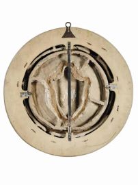 The formal compositional rigour of this garland - a feature that characterizes the best works of Della Robbia distinguishing them from other works of artists such as Benedetto and Santi Buglioni - is reflected in the technical craftsmanship of this medallion, resulting from the established practice of this artist and, in particular, in his ability to slowly dry, fire and transport the terracotta work (Vaccari 1998; 2009). The medallion is in fact made up of seven pieces: the shield, the moulded bowl and the wreath divided into four segments (each containing two groups of fruits). Carefully emptied in order to give to the clay a thin and uniform aspect, these elements were hollow on the back with a box-like structure and reinforced with a supportive framework and air holes behind the larger fruits, which were shaped by adhering the clay to the band of the frame.
